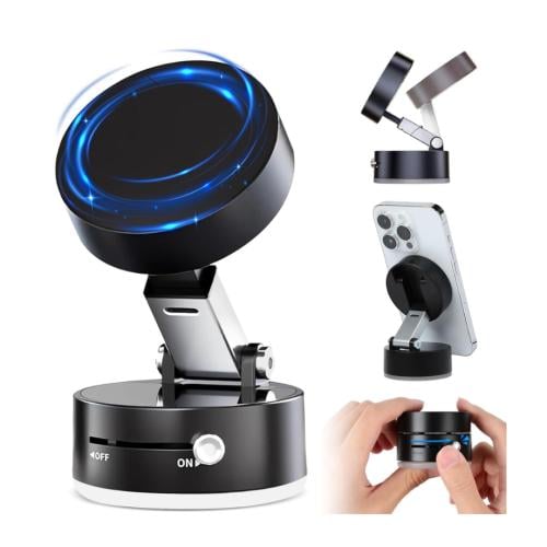 استمتع بتجربة قيادة مريحة مع حامل الجوال المغناطيسي المزود بتقنية الشفط الفراغي القوي. تصميم فريد يضمن ثباتًا مذهلًا حتى على الأسطح غير النظيفة، دون ترك أي أثر