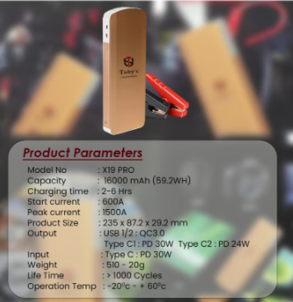 سواء كنت على الطريق، في رحلة برية، أو تواجه طارئ غير متوقع، جهاز X19 PRO Compressor هو رفيقك المثالي. يجمع بين التصميم الذكي، الأداء العالي، والتقنيات المتقدمة ليمنحك راحة البال في كل لحظة. بطارية ضخمة، قدرة تشغيل مذهلة، ومنافذ شحن متعددة – كل ذلك في جهاز واحد أنيق وسهل الحمل.